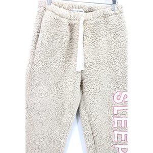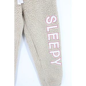 Weekend Edition Sherpa Pants Womens Beige Sleepy Embroidered Drawstring Medium M