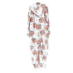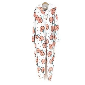 Weekend Edition Women's Soft Plush Printed Peach Sherpa Lined Hooded Onesie