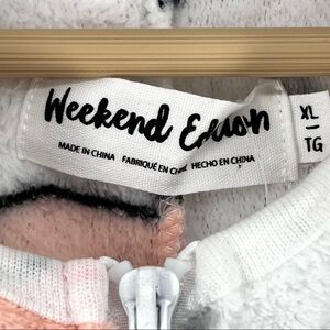 Women's Soft Plush Printed Peach Sherpa Lined Hooded Onesie from Weekend Edition in White/Combo.