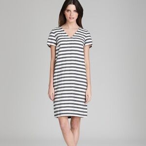 Weekend MAxMara Black White Striped Linen Blend Mini Dress Sz 14 Career Preppy