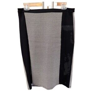 Weekend Max Mara Black White houndstooth pencil skirt L Stretch Zip Jersey