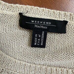 Weekend Max Mara Freyed Hem Knit Linen Top Cream Sz small
