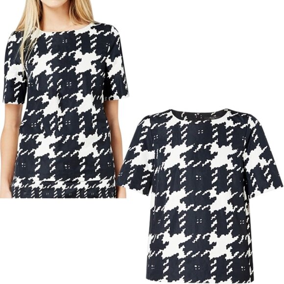 Weekend Max Mara, New Life Houndstooth Short-Sleeve Blouse Black/White Size 6 US