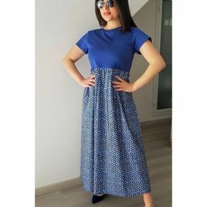 Part T-shirt and part breezy dress, this all-cotton option from Weekend Max Mara adds a pop of color and punch pattern to your closet. Falls below the knee to lower calf Crewneck Pullover styling Jersey-knit bodice Woven skirt On-seam pockets at hips Cotton: Woven and fresh; little stretch Unlined 100% cotton Machine washable Imported Belt pictured not included