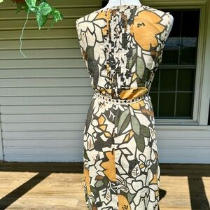 Weekend Max Mara Pleated Floral V-neck Fit and Flare Midi Dress Size US8 M