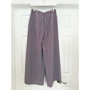 Weekend Max Mara Red Blue Geometric Silk Top Blouse & Wide Fit Pants Set Size 8
