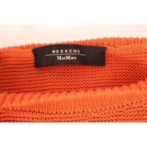 This Weekend Max Mara sweater is crafted from a soft cotton blend, ideal for professional settings or casual wear. Its vibrant orange hue adds a touch of color, while the knit texture provides warmth and comfort. Perfect for layering during transitional seasons, it pairs seamlessly with various wardrobe staples.