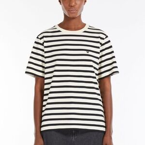 Straight-fit short-sleeved crew-neck T-shirt in soft pure cotton jersey fabric. Embellished with small side slits at the hem and embroidered butterfly logo detail on the chest. Jersey fabric 100% cotton. Black and off-white. Fits true to size. Worn a handful of times. Excellent pre-loved condition. Reduced Again❗️