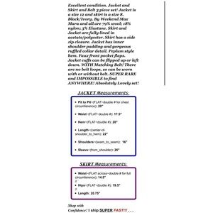 Weekend Max Mara Sz 12 8 Wool Houndstooth Peplum Belted Jacket Skirt Suit Set please pay attention to picture #2, which is the item description. 😊