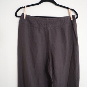 Weekend Max Mara US 8 Fit W13 Linen Wide Leg Cropped Trousers Brown Side Zip