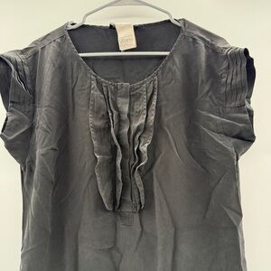 Weekend MaxMara 100% Silk Black Short Sleeve Ruffle Front Shift Dress