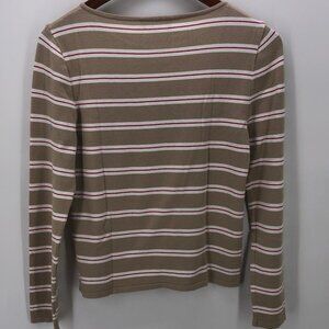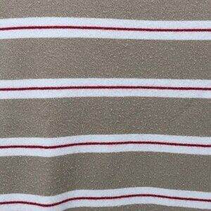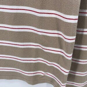 Weekend Max Mara Tan Red White Striped Long Sleeve Crew Neck T Shirt Size Medium M--smaller size medium. Used condition with some fading and significant piling/fuzzies as shown in photos.