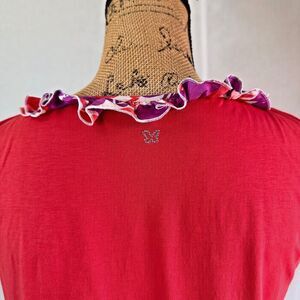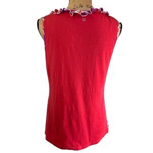 Weekend MaxMara Women's Red Floral Ruffle Neck Cotton/Silk Tank Top Blouse Sz M