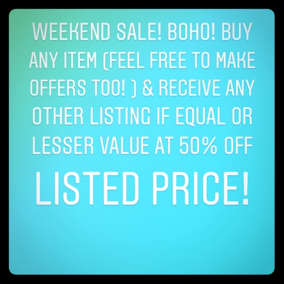 Buy/ choose any item to buy and receive 50% off any other item listed, that is of equal or lesser value, at 50% off! I will combine both to save on shipping!