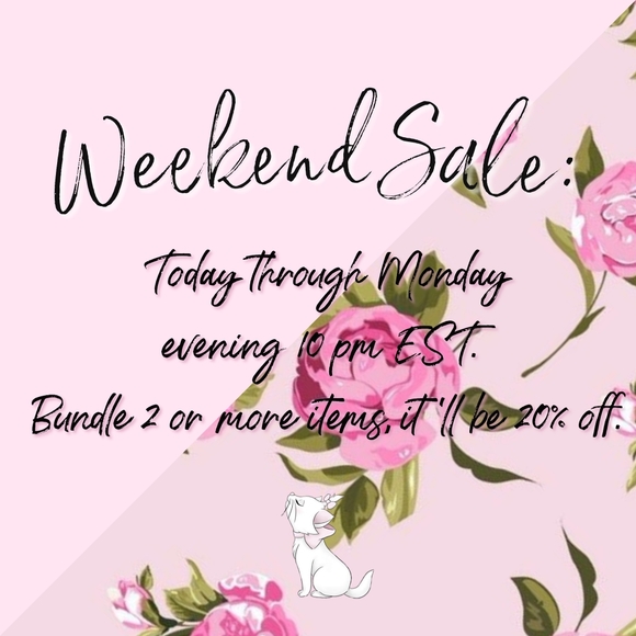 Weekend sale till Monday 10 pm EST. Bundle 2 or more items, it'll be 20% off. So get that item that you've been wanting from my closet before it's gone!