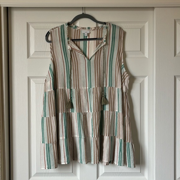 Sleeveless, tiered top in great condition. Very lightweight and has fun tassel details
