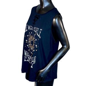 Weekend Soul NWOT Sleeveless Black Tank with Celestial Print Womens Size XXL