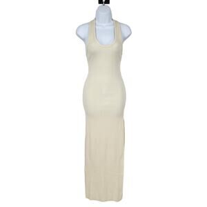Weekend Stories Cut Out Back Ribbed Erykah Midi Dress in Beige Size XXS