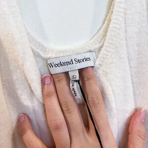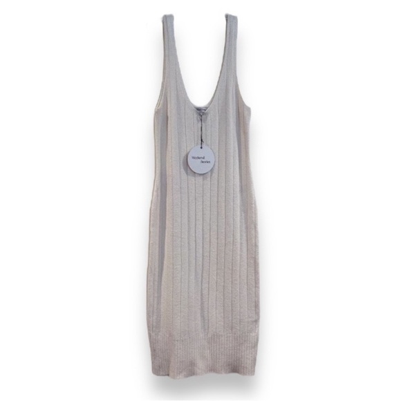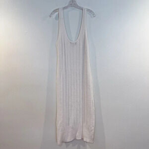 Weekend Stories Loreo Cream Cotton Blend Ribbed Scoop Neck Sleeveless Midi Dress in Winter White L NWT