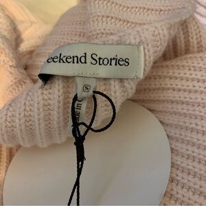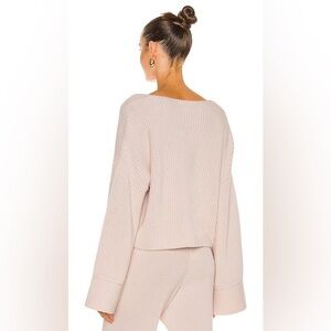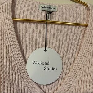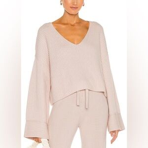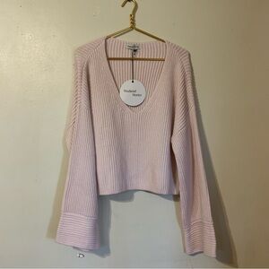 Weekend Stories Ligh Pink Knit Sweater Size Small. New with tags, v neck, wide sleeve, revolve brand, Kiera Styke, blush color. Cotton/Wool blend knit. Drop shoulder, chunky, versatile.