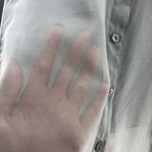 74% viscose, 25% silk. Made in Italy. Dry clean only. Front button closure. Buttoned cuffs. Sheer fabric with shirttail hem. Revolve Style No. WEER-WS23. Manufacturer Style No. WSS12 S21.
