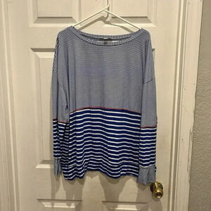 Weekend Suzanne Betro 3X Rayon Spandex Red White Blue Striped Top Long Sleeve