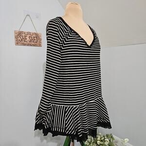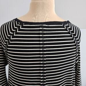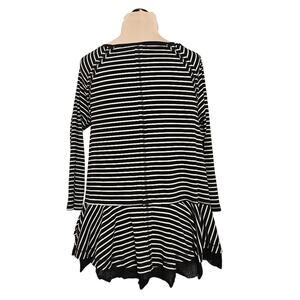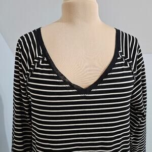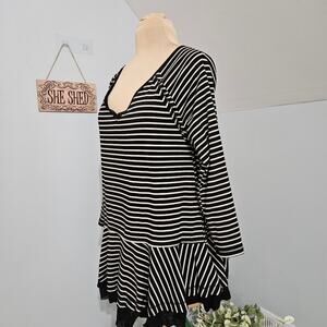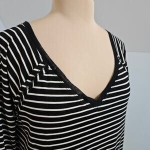 Weekend Suzanne Betro Black White Striped Exposed Seam V Neck Tunic Top Large