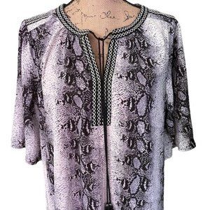 Weekend Suzanne Betro Blouse. Boho style. Size large. New. Laying flat pit to pit 21in. Length is 28in. Snakeskin print. Longer in back.