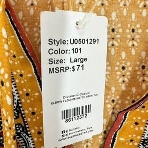 Weekend Suzanne Betro Boho Tunic Top Size L Elbow Flounce Notch Neck Casual NWT