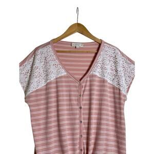 Weekend Suzanne Betro Women Lace Striped Button Tie-Front Top Size XL Pink NWOT