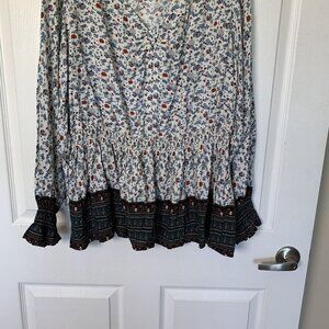 Weekend Suzanne Betro Women’s 3X Floral Multicolor Long Sleeve Boho V-Neck Top