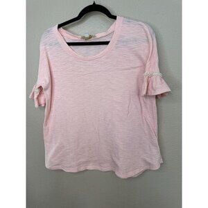 Weekend Suzanne Betro Womens Pink Blouse Small 3/4 sleeve round neck cotton