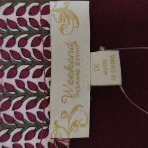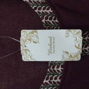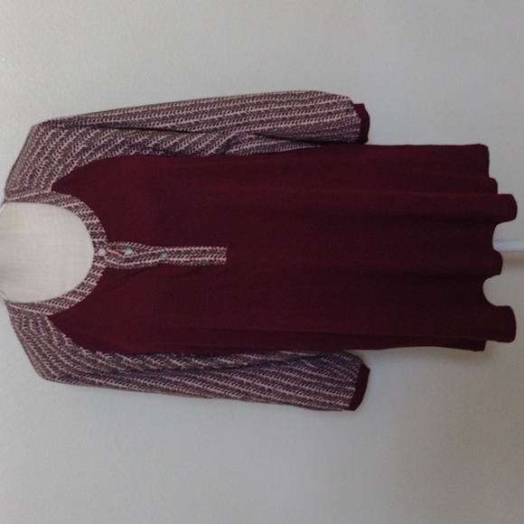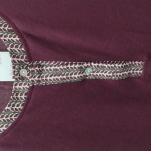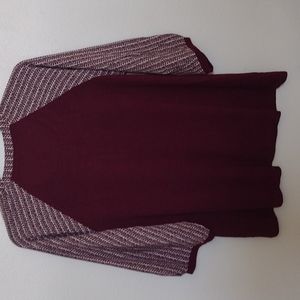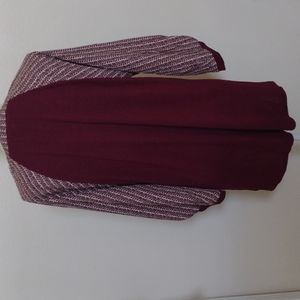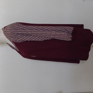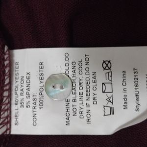 Beautiful burgundy stretch top and silky feeling material on a sleeves .