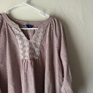 Weekend Tunic Top Womens 2X Red White Striped Embroidered Cotton Boho Blouse