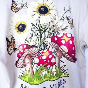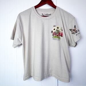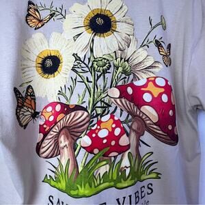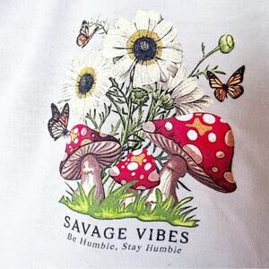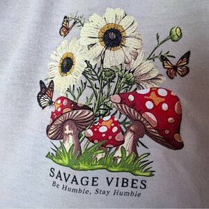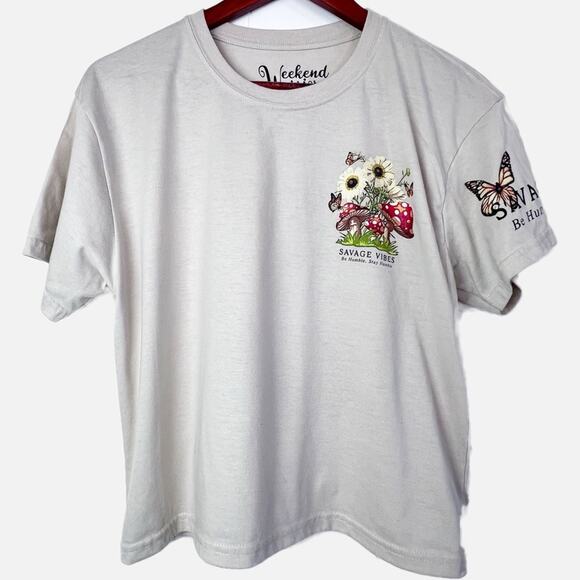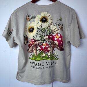 Weekend Warriors Tan Savage Vibes Mushroom Botanical Crop Tee Shirt Women Size L