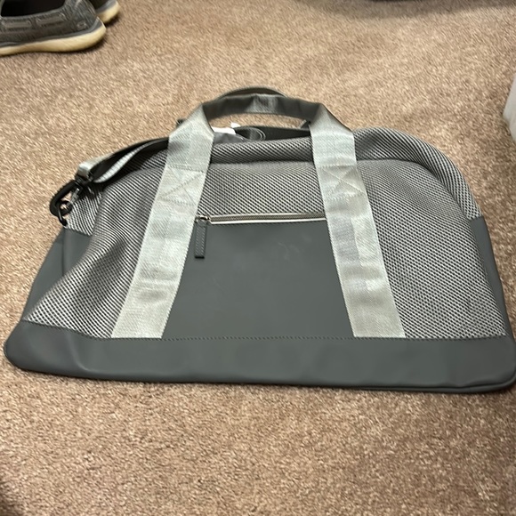 Purchased at DSW, excellent condition. Smoke free home. Gray in color with mesh material. 2 handles & a long strap. Zipper pocket in front