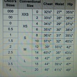 @2many Hi, here is another. CHICOS listing with size conversion chart.