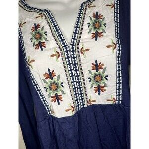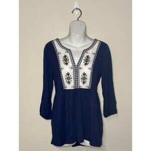Weekend by Suzanne Betro Blue Tunic Top With Floral Embroidery Size S NWT!!!