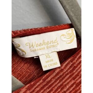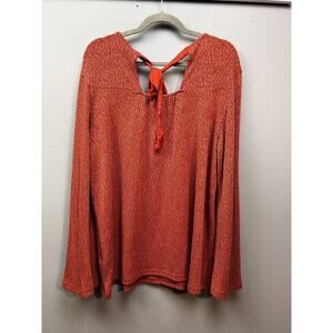 Weekend by Suzanne Betro Top Womens XL Rust Button Bell Sleeves Tunic Tie Back