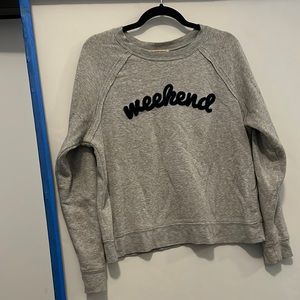 Very comfy pullover; has a tiny bit of pink on the front that should come out in the wash (I just haven’t tried)