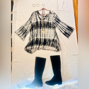 Bohemian tahini shirt. I’m 5’4 and it comes to my knees.
