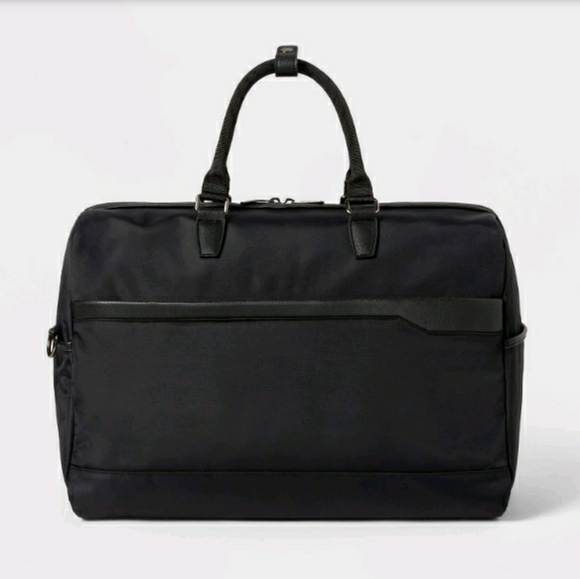 Brand New weekend bag. Plenty of room. Handles and strap. Pickets inside, outside on ends and had a slip pocket to pull over your rolling suitcase handle. I purchased it for a trip but it was canceled. I no longer need it.
