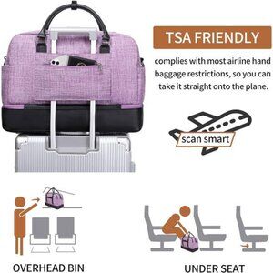 【Airplane Friendly Travel Bags for women& Back Side Trolley Sleeve】The perfect carry on bags for airplanes. Back side luggage sleeve allows you to slide it over the handle of rolling suitcase or luggage, preventing travel weekender bags falling and freeing your hands. A zipper pocket on the back to hold your phones, ID cards or passports, easy to take any time.
