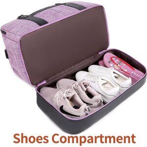 【Separate Shoe Compartment】The weekender bag with shoe compartment can hold up to three pairs shoes, clothes, wash bags or other things you want to store separately, separate them to keep other things in carry on bag clean and tidy. The thicker bottom can better carry weight.