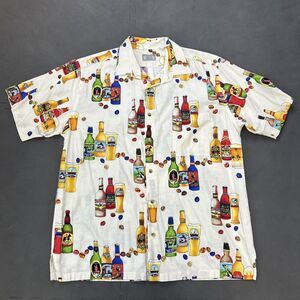 Weekender Traveler Shirt Mens Large Beer Bottles Caribbean Happy Hour Ivory FS