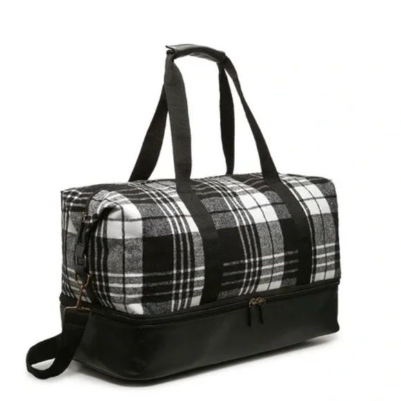 Plaid luggage bag with separate shoe compartment. Great duffel bag travel bag suitcase with detachable shoulder strap for versatile carrying options. Perfect for weekend getaways or gym sessions, this bag combines style with practicality. Will come to you new in plastic packaging.