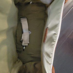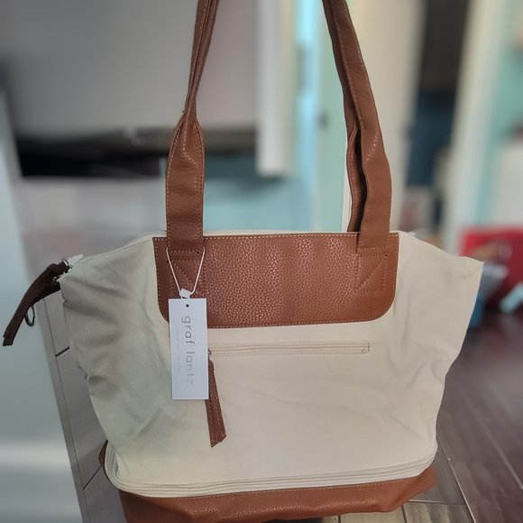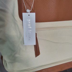New Carry-On Travel Weekender by Graf Lantz-Retail value: $158. Made with soft canvas and Graf Lantz's sturdy, signature vegan leather handle reinforcement, this sleek and sophisticated selection features an adjustable and removable crossbody strap, shoulder strap, outside zip pocket to keep boarding passes handy, suitcase strap for traveling with ease, *and* a lower compartment to separate your clean clothes from your muddy hiking shoes, wet snow gloves, shoes, toiletries, sandy beach towel, and more.