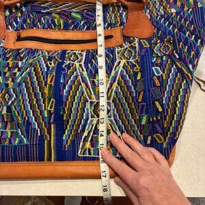 Weekender/Travel Carry On Guatemalan Huipil Colorful Fabric Leather Bag Luggage