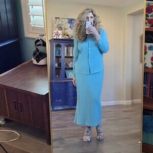 Weekenders Ribbed Straight Skirt & Top With Separated Buttons Pocket Size S/P