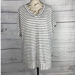 Weekends By Chicos 3 Shirt Womens XL Striped V Neck Short Sleeves Stretch